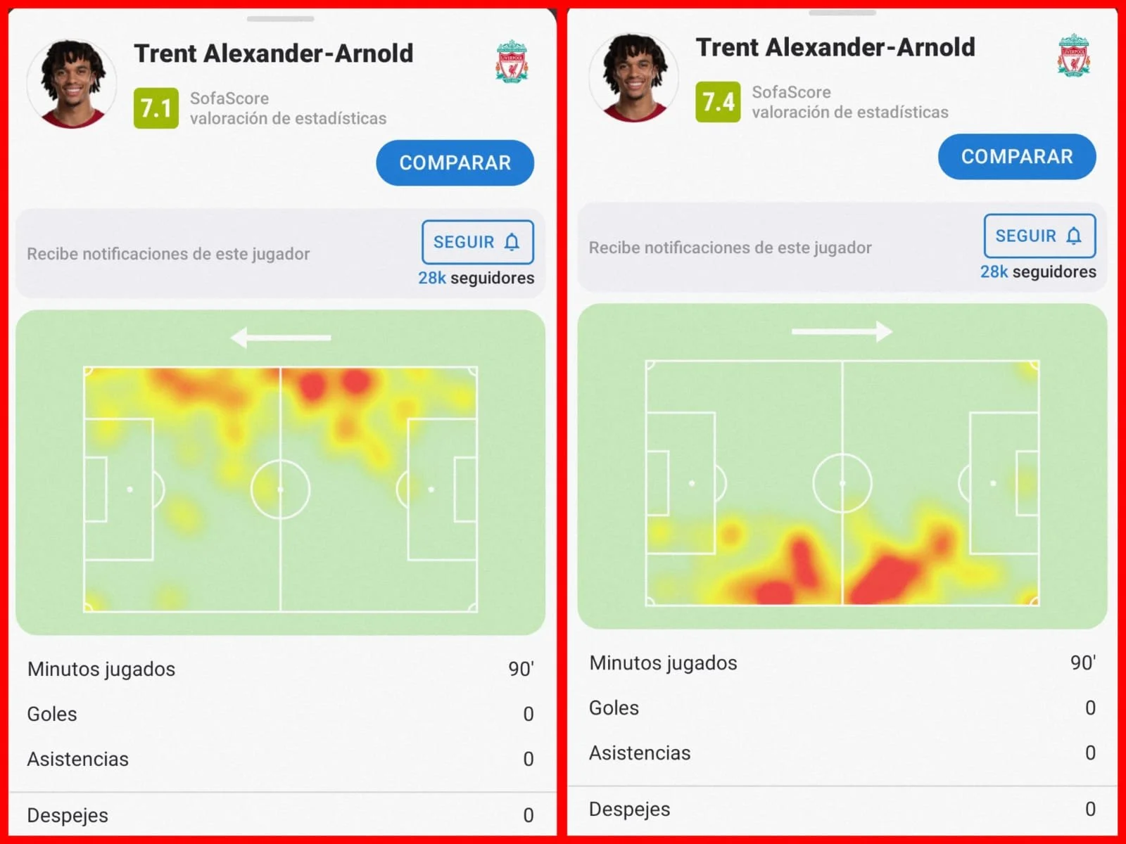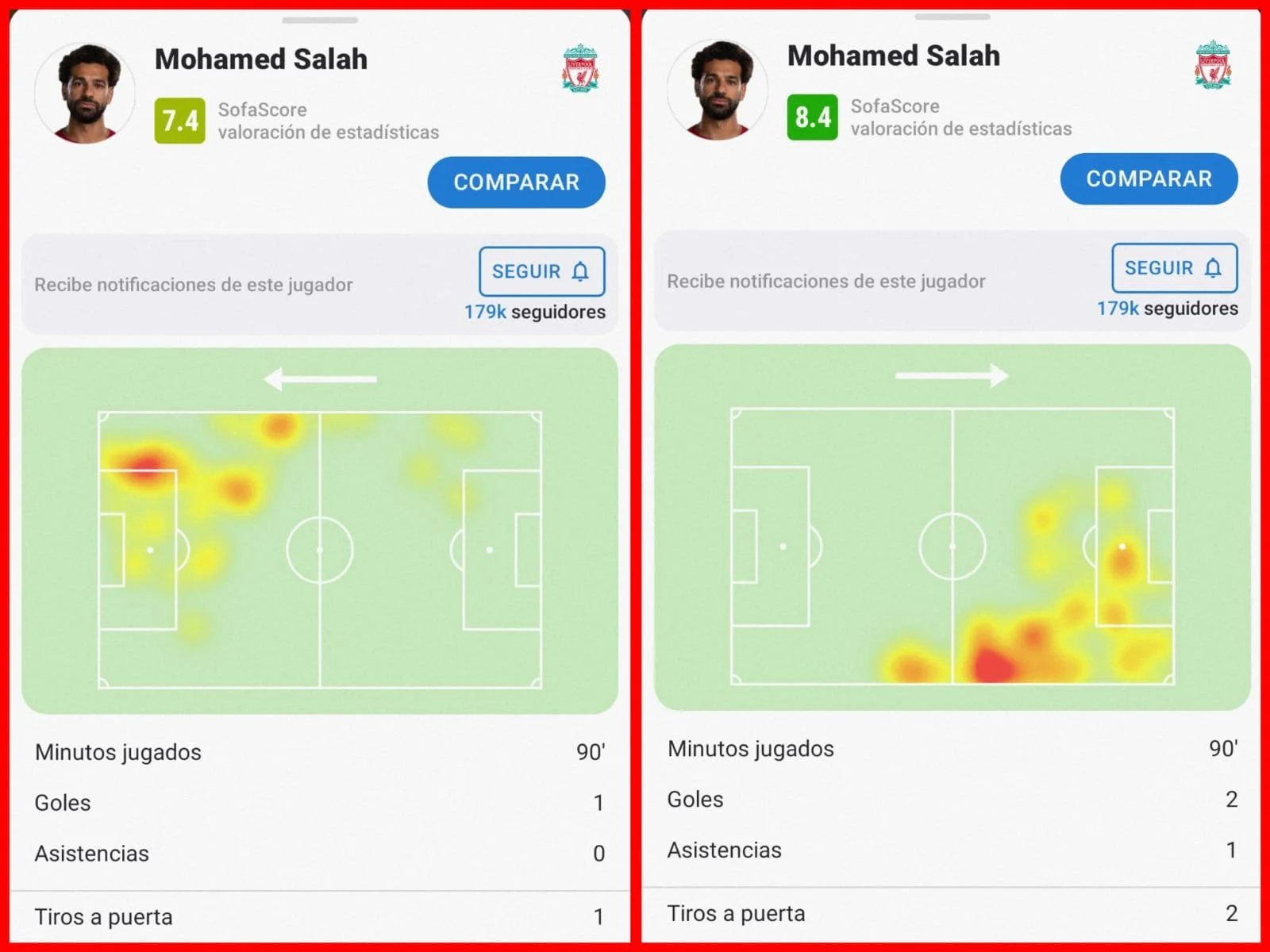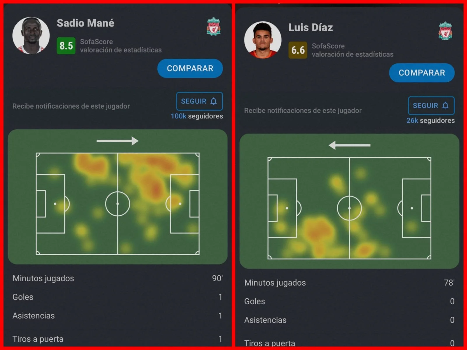 Para cerrar, te muestro los mapas de calor del Liverpool que goleo 4-0 al United hace unos meses vs el que perdió el día de ayer.